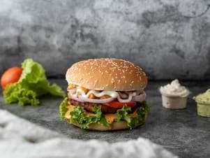 Golden fried vegetable patty layered with lettuce and tangy mayo.